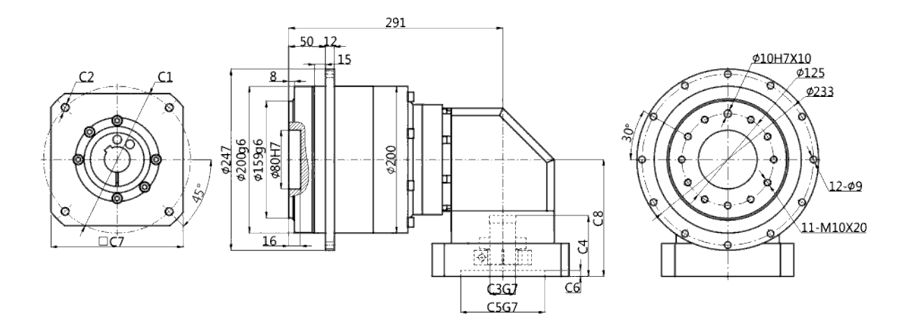 | HGH200-Z-L1 (Single) | ⌀200 | 4-M12 | ⌀35/⌀42 | 82,5 | ⌀114,3 | 8 | 180 | 159 |