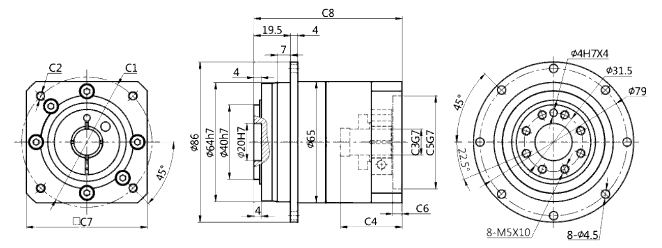 | ⌀45 | 4-M3 | ⌀8 | 30 | ⌀30 | 5 | 65 | 100,5 | |