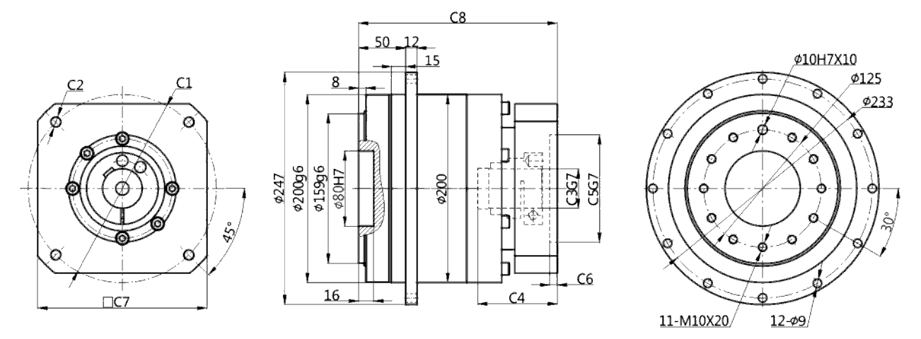 | HGH200-L1 (Single) | ⌀200 | 4-M12 | ⌀35/⌀38/⌀42 | 82,5 | ⌀114,3 | 8 | 180 | 211 |