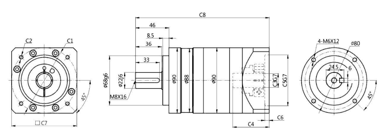 | ⌀130 | 4-M8 | ⌀19/⌀22 | 62 | ⌀95 | 8 | 110 | 160 | |