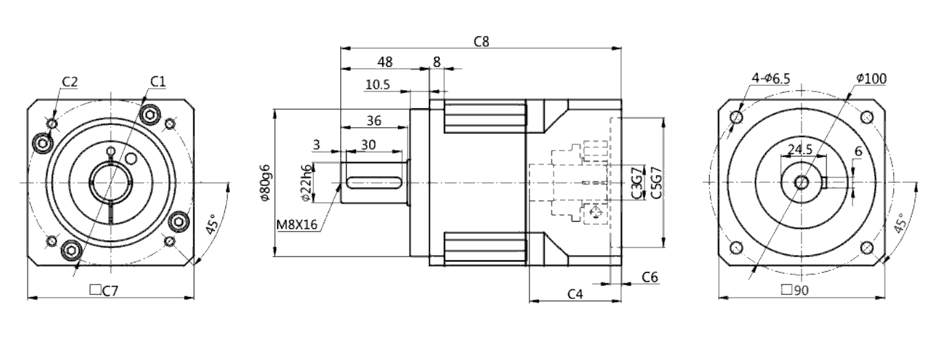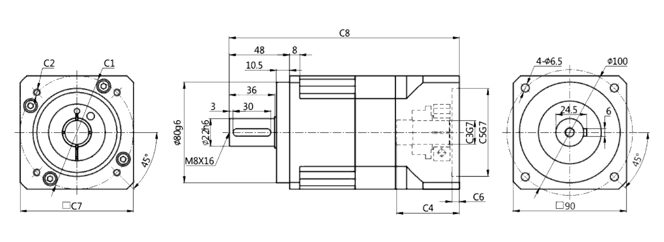 ⌀145 | 4-M8 | ⌀19/⌀22/⌀24 | 65,5 | ⌀110 | 8 | 130 | 167,5 | |