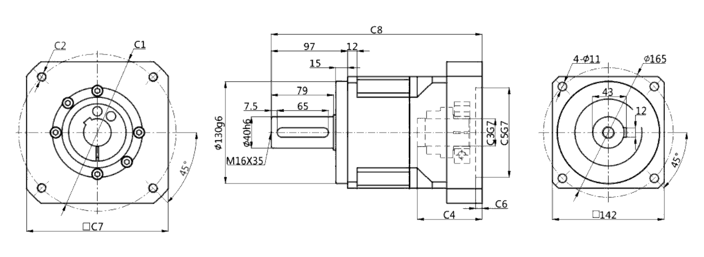 HXF142-L1 (Single) | ⌀200 | 4-M12 | ⌀35/⌀38/⌀42 | 82,5 | ⌀114,3 | 8 | 180 | 268 |