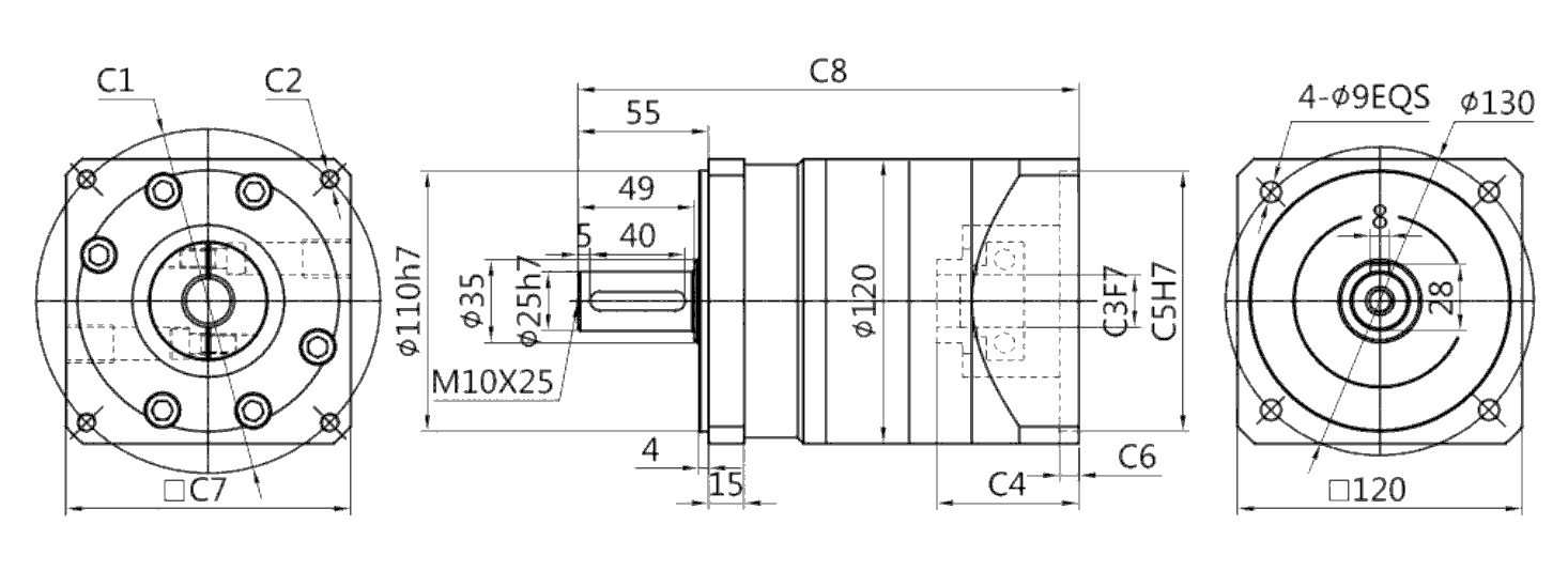 ⌀130 4-M8 ⌀19/⌀22 60 ⌀95 8 130 241