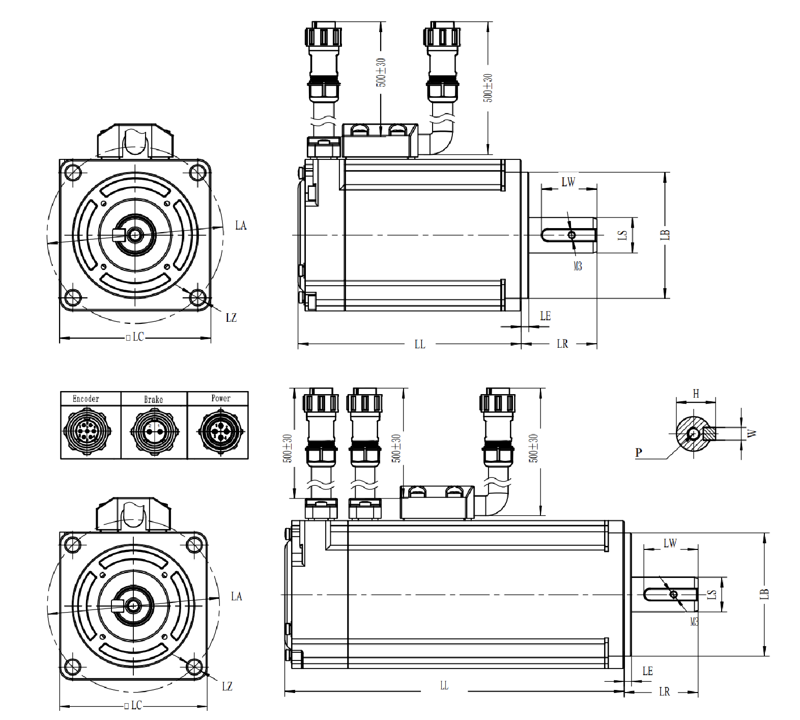 | Model moteur | LC (mm) | LZ (mm) | LA (mm) | LS (mm) | LB (mm) | LL (mm) | LR (mm) | LE (mm) | LW (mm) | W (mm) | H (mm) | TP (mm) |