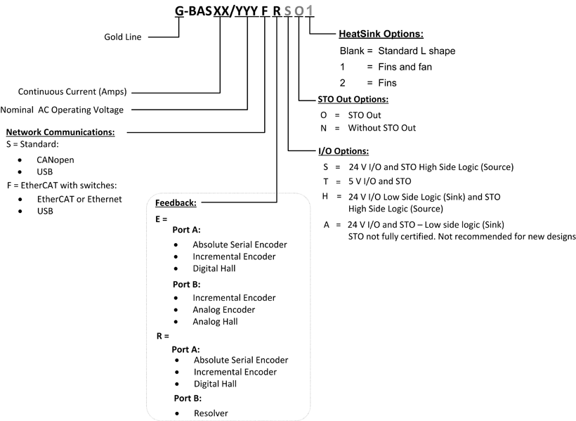 Feedback | Incremental Encoder, Resolver, Digital Halls, Analog 1V ptp (Sin/Cos), Analog Halls, Absolute Serial Encoders (EnDAT 2.2 / BiSS / SSI / Panasonic / Mitutoyo / Tamagawa / Gurley - Virtual Absolute), Tachometer, Potentiometer | |||||||||||
